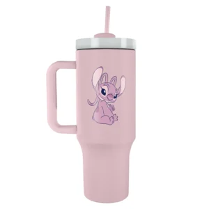 An officially licensed Disney Lilo & Stitch 40oz tumbler is available to buy directly from the publisher with free UK delivery. This large 1200ml drink cup body is made from 304-grade stainless steel with double-walled vacuum insulation to keep your drinks hot or cold for approximately 7 and 11 hours, respectively. The travel mug will fit most cup holders, making this ideal for any journey. There is a silicon grip handle for a comfortable and safe hold. A full-cover lid offers sip-through drinking and a splash-resistant press-in straw. The lid is made from BPA-free plastic, ensuring your health and safety. An eco-friendly, stylish drinking tumbler, which is a great gift idea